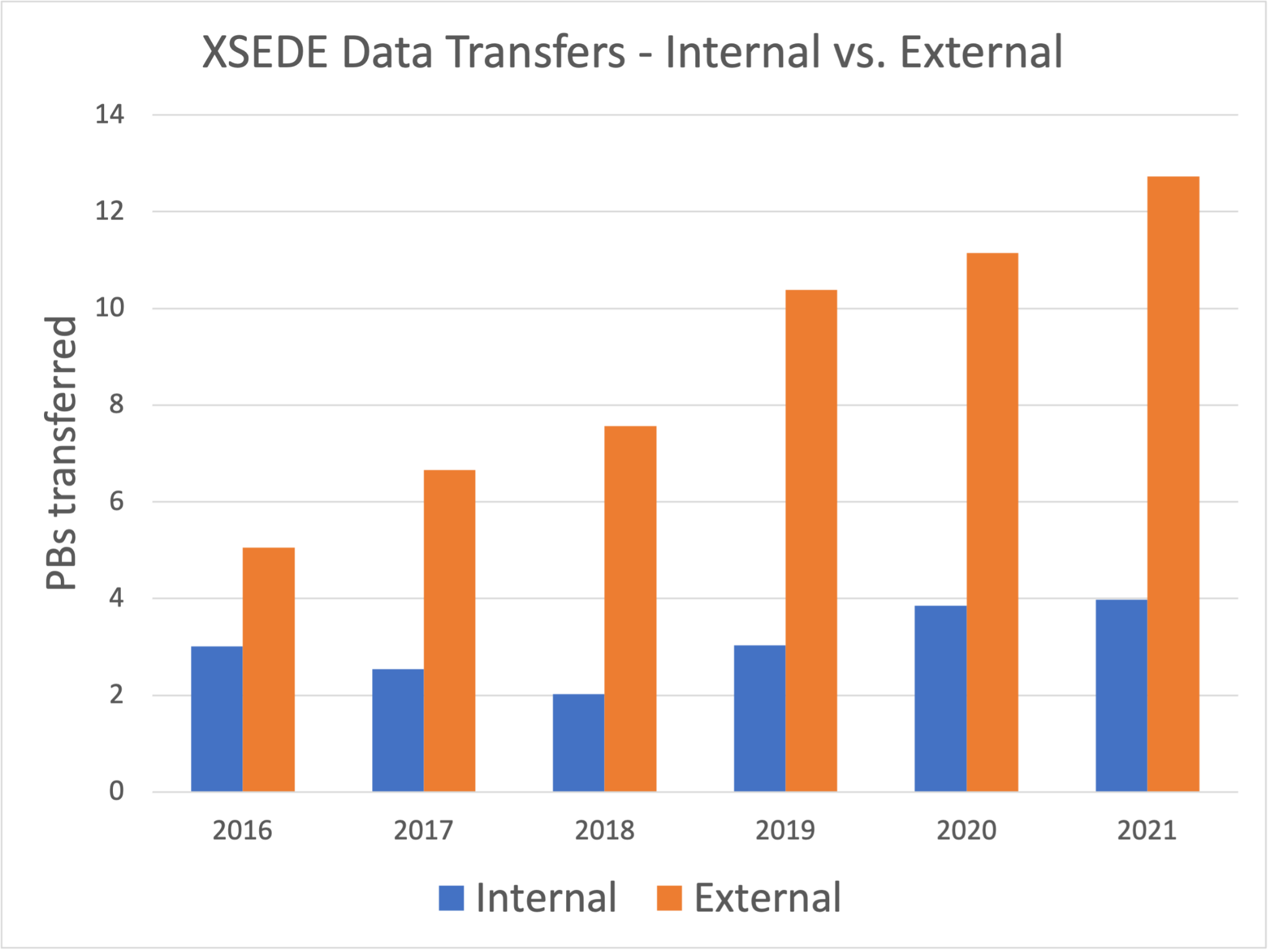 A Globus endpoint connects a system to Globus and enables authorized researchers (members of an allocated project team) to transfer data to and from it using Globus. During the last two years of XSEDE, hundreds of researchers used Globus to transfer data to and from XSEDE resources as a part of their projects. A single transfer request may involve a single file or a million files. Individual requests were commonly 100 GB or more and frequently 1 TB or more. Requests of 10 TB or more happened daily. The other end of the data transfer may be a personal system, a campus system (hundreds of campuses have multi-user Globus endpoints and encourage their researchers to use them), or another HPC system (hundreds of national-scale service providers, e.g., DOE or non-US systems, have Globus endpoints). Globus enables researchers to perform transfers at these scales and is broadly available on the systems where research data is used.