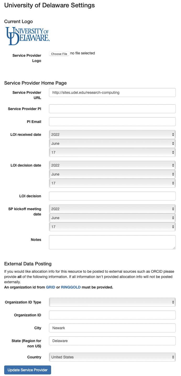 Submitted organization information will be entered by a CiDeR administrator in a form as shown below and used to grant access to CiDeR administrators.