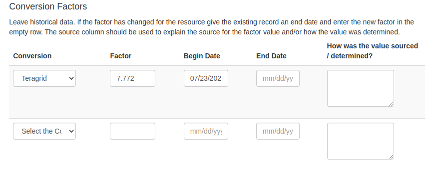 The CiDeR Documentation has instructions for entering a “conversion factor”. This is the NU conversion factor of your resource, divided by 21.576. **For most compute resources, you should NOT change the conversion factor that you already have listed.